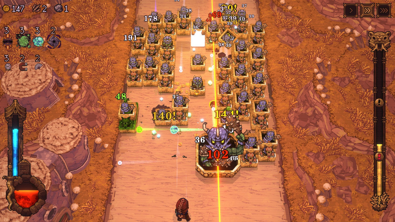 Le gameplay repose sur la fusion de plus de 60 types de boules pour créer des synergies offensives et défensives. À cela s’ajoute un système de construction avec plus de 70 bâtiments à débloquer, chacun apportant des bonus, des améliorations ou des personnages supplémentaires. Le jeu propose plusieurs biomes, dont des déserts, des cavernes de glace et des forêts, ainsi que des boss occupant l’intégralité de l’écran.