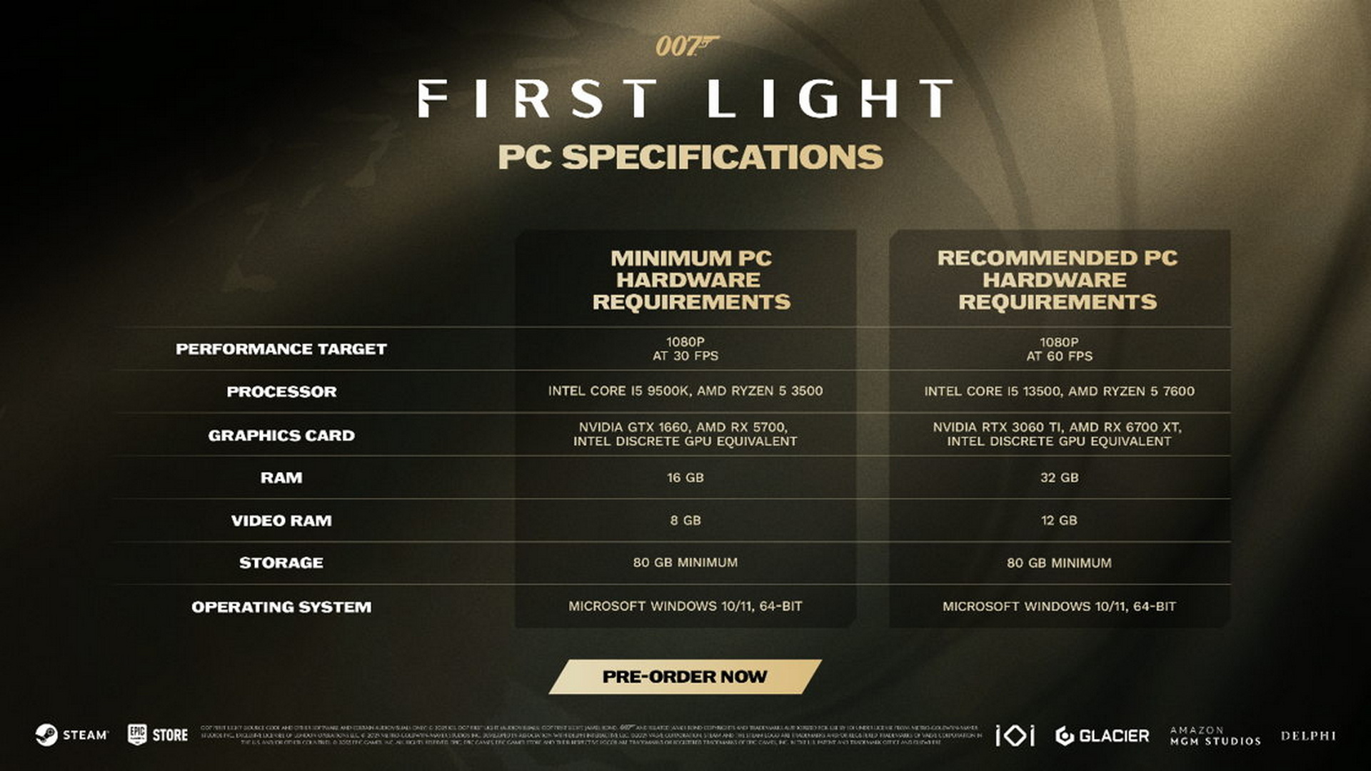 Les studios ont présenté les configurations nécessaires pour profiter de 007 First Light sur PC :