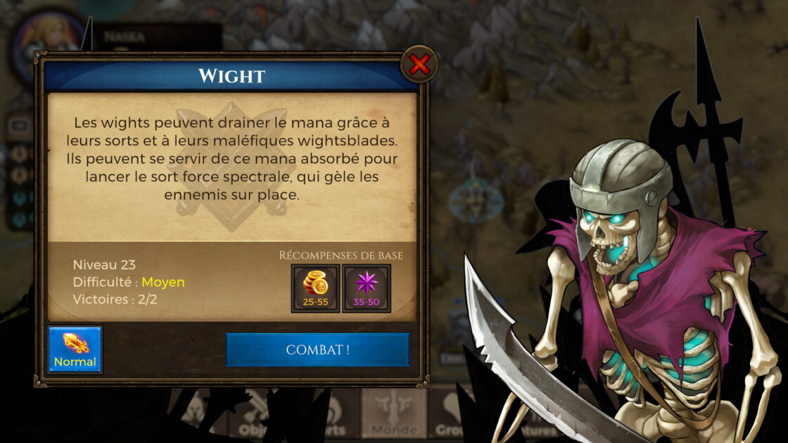 Une fois nos sorts remplis, on peut les lancer pour faire des dégâts ou des bonus et des malus. Il reste les crânes qui infligent des dégâts directs. L’or permet d’acheter du matos, d’améliorer nos compétences et notre citadelle.