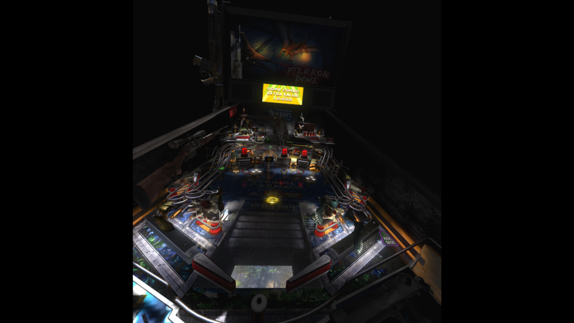 Il n’y a pas d’effets dynamiques, comme sur un Pinball FX, c’est regrettable puisque c’est un élément qui (en plus de dynamiser le plateau) ressort très bien en VR. Par contre, les différents objets apportent une verticalité au plateau, comme dans Primal Carnage Deluxe.
