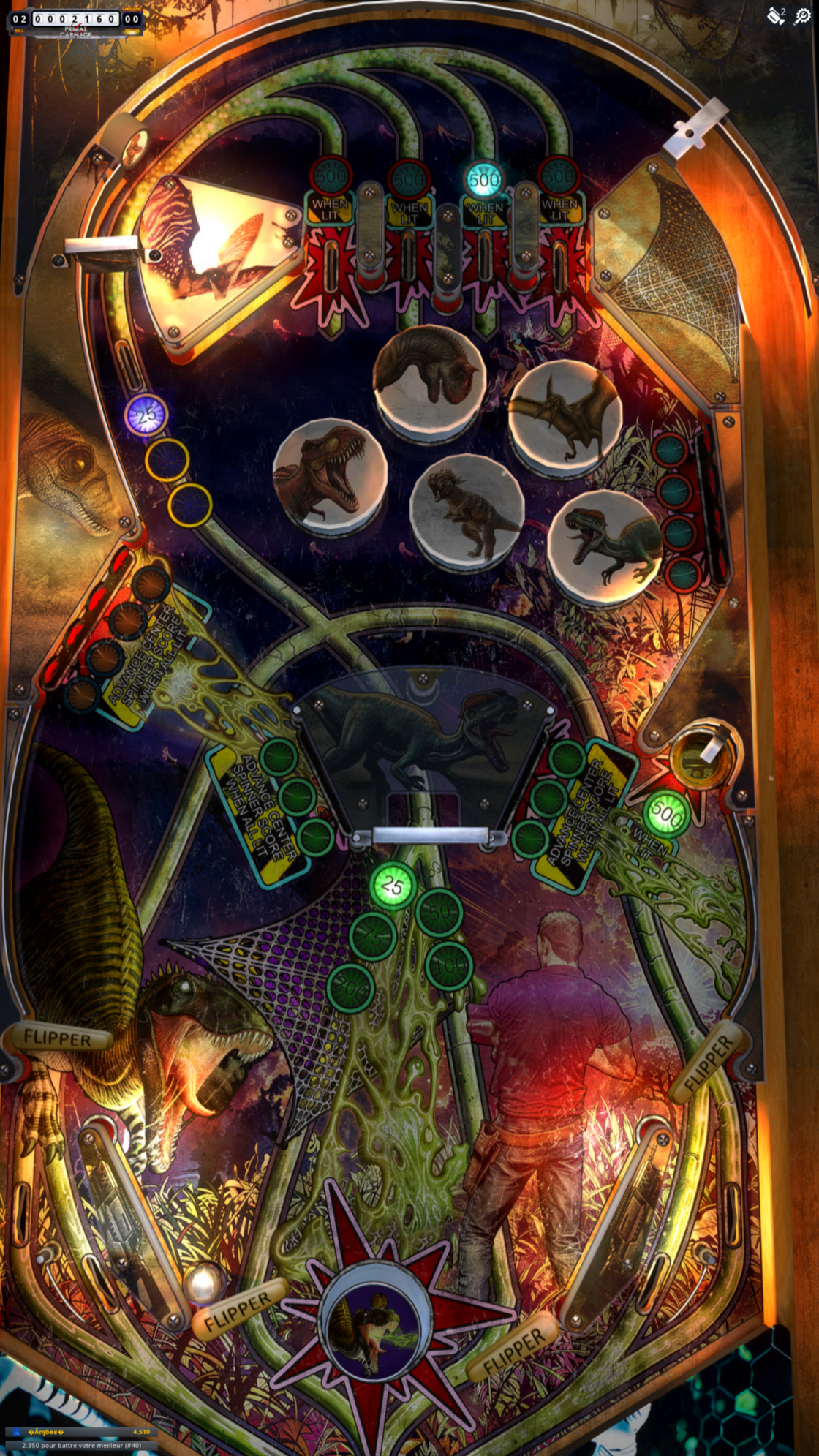 Ce n’est pas Pinball FX, mais le dinosaure central est animé, il peut, par exemple, gober notre bille. Les portes des rampes s’ouvrent et se ferment, etc. On trouve donc un peu d’effets dynamiques, même si cela reste light, par rapport au titre mentionné. Mais cela fait son petit effet et cela dynamise bien l’action avec des effets de lumières qui sont bien exploités.