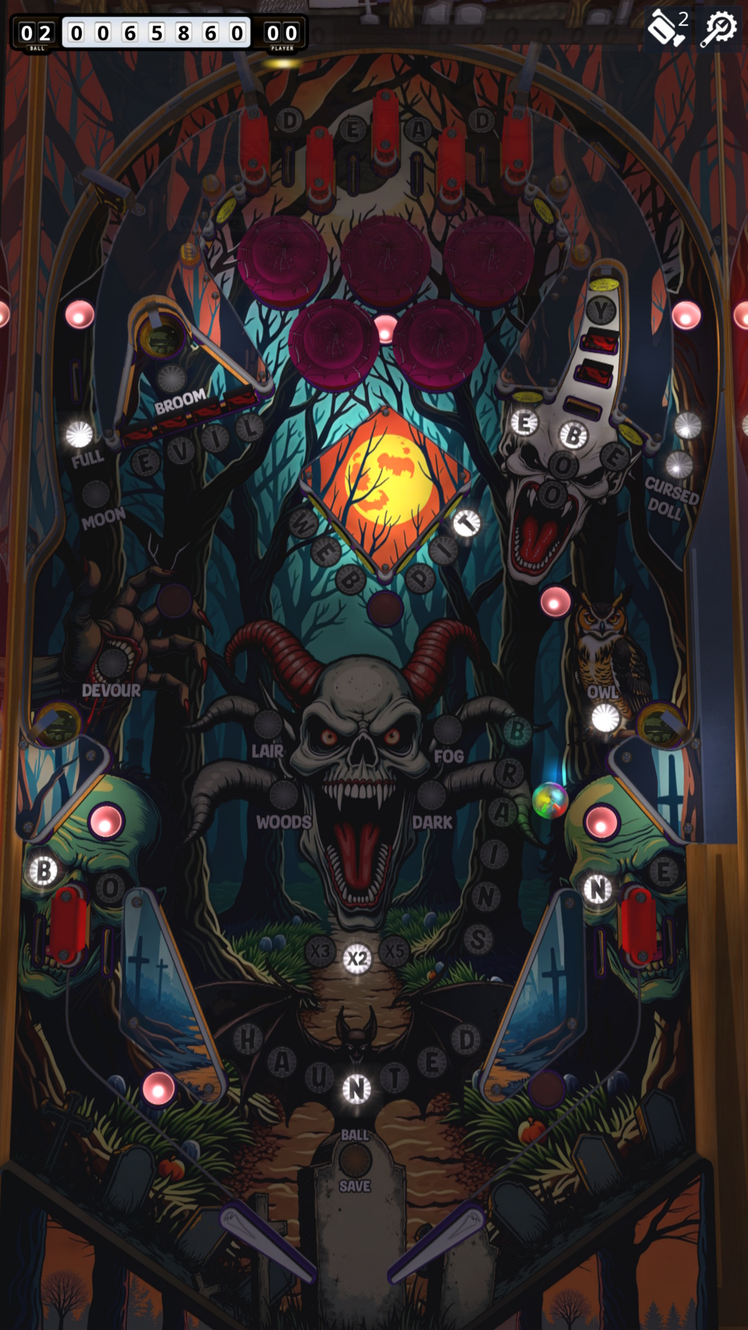 On bénéficie d’un flipper supplémentaire au milieu droit et d’un éjecteur en haut à gauche entre l’orbite et la rampe gauche. Il y a aussi un objet décoratif légèrement animé qui représente un personnage du jeu (elle me rappelle quelque chose même si je ne me souviens plus de son nom et de son rôle ^^) protégé par trois cibles. Cela n’a pas de rapport, mais son positionnement et le gameplay m’ont fait penser au Ringmaster de la table Williams CIRQUS VOLTAIRE, même si elle ne se relève pas de la même manière ^^