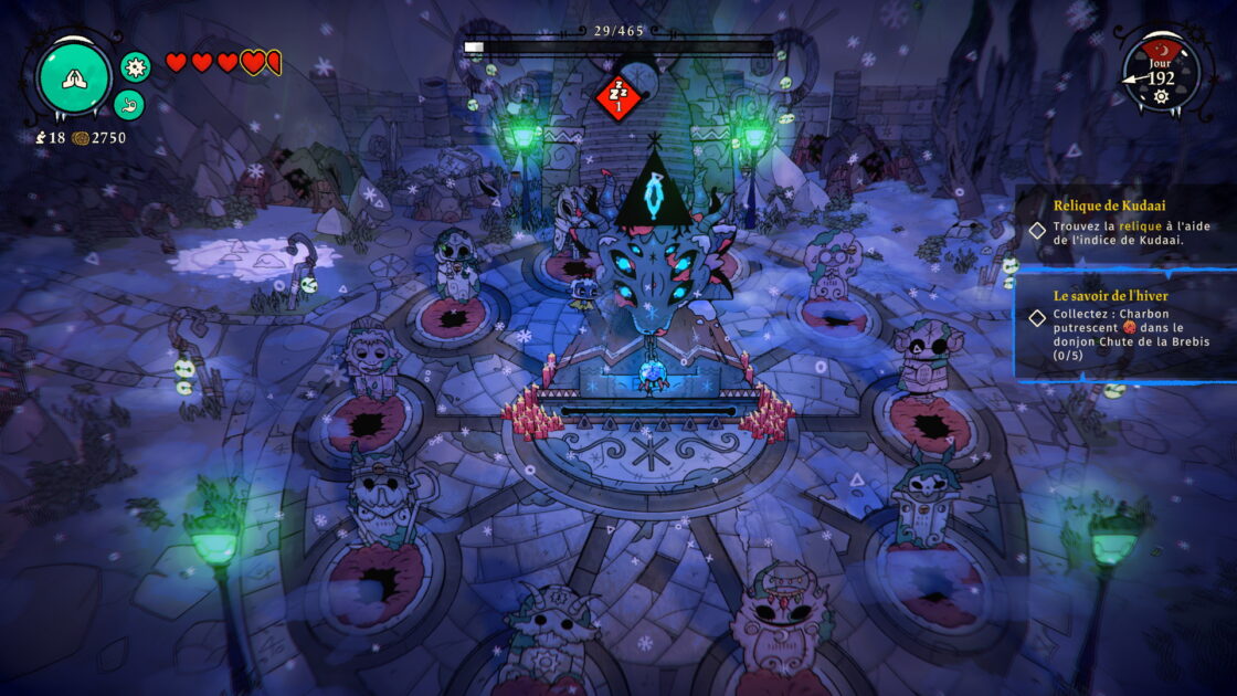 On jongle toujours entre croisades en donjons procéduraux et management d’une secte de fidèles. Mais Woolhaven introduit la saison de l’hiver qui va affecter notre culte et le gameplay.