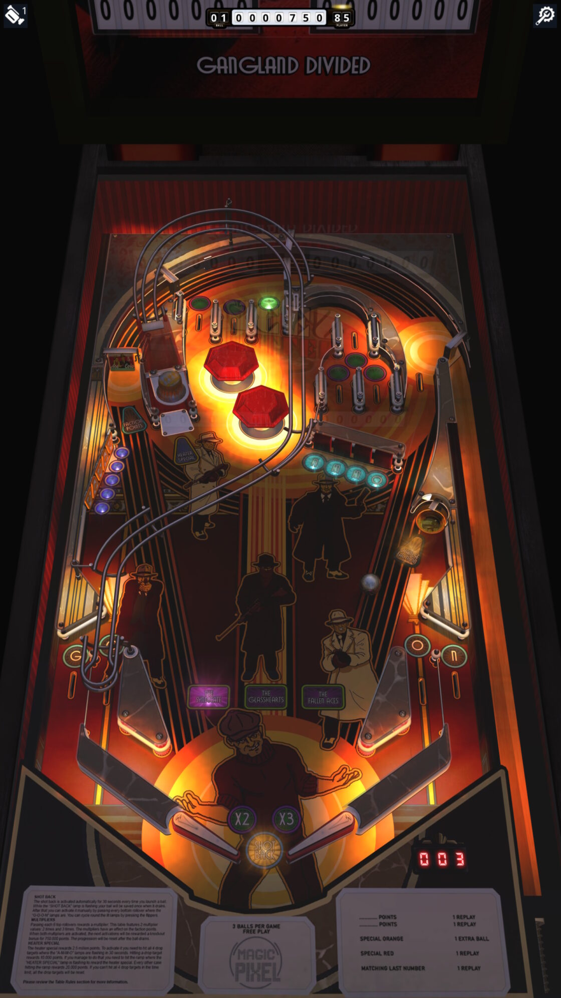 Et encore une déception. Le mix cel-shading et playfield artwork style BD ne me parle pas. Et l’agencement du plateau guère plus.
